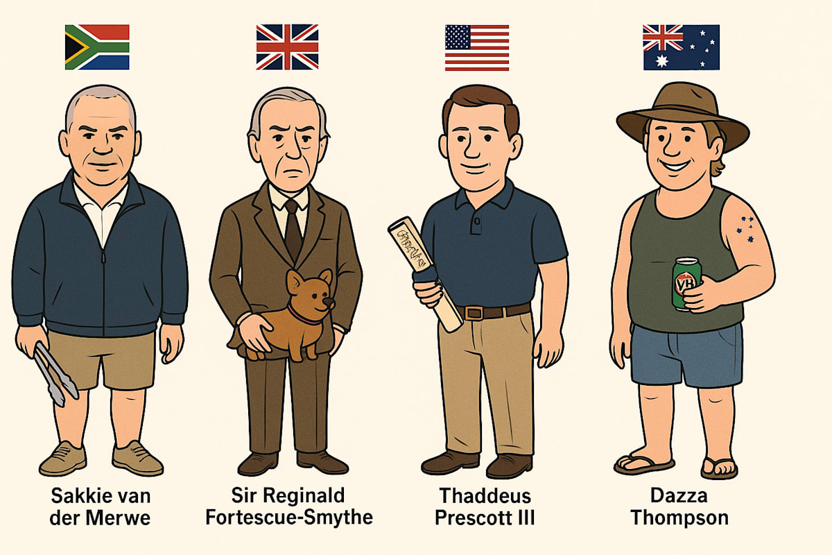 Vibe: Laid-back until the Wallabies lose. Then it’s war. Has a Southern Cross tattoo, probably got it on a dare. Been “on smoko” for the last six years.